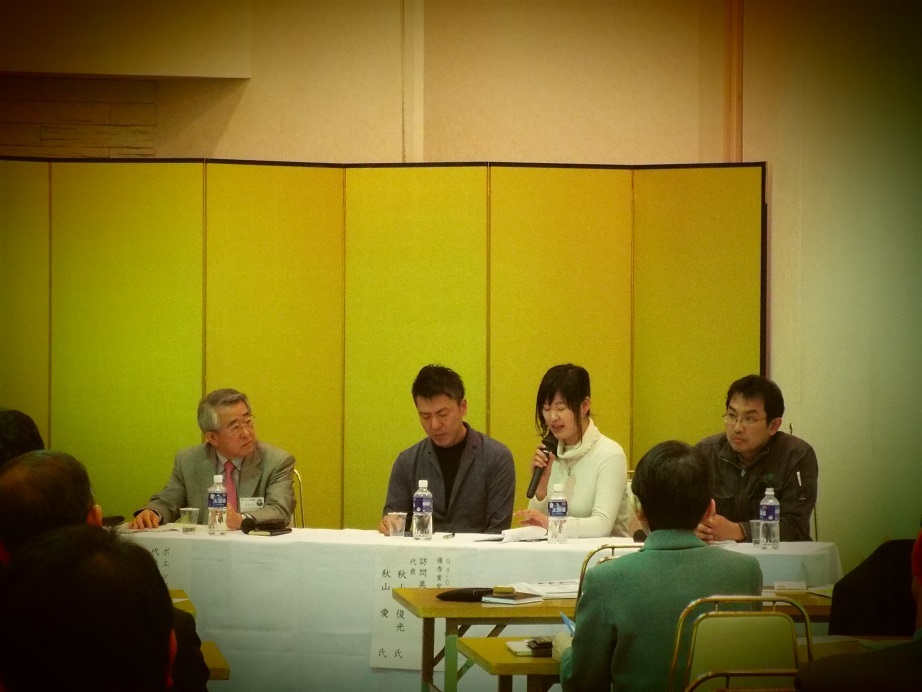 写真は、江津市で行われた講演会で、パネルディスカッションをされた時の写真です。