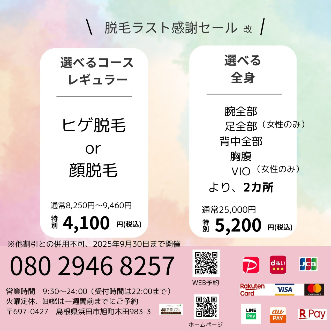脱毛ラスト感謝セール 2025年9月30日まで